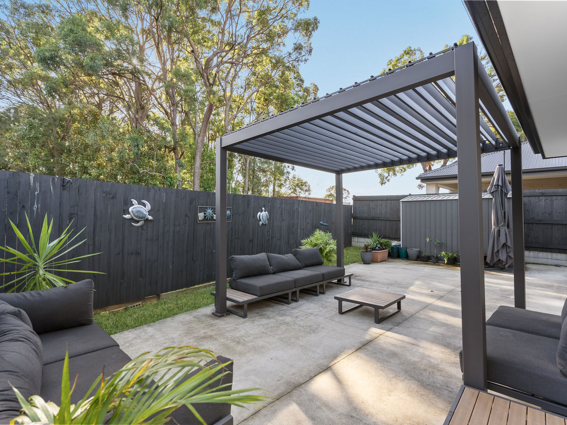 The open-plan kitchen, living, and dining area flows seamlessly outdoors to a covered pergola and low-maintenance yard backing onto tranquil bushland with no rear neighbours.